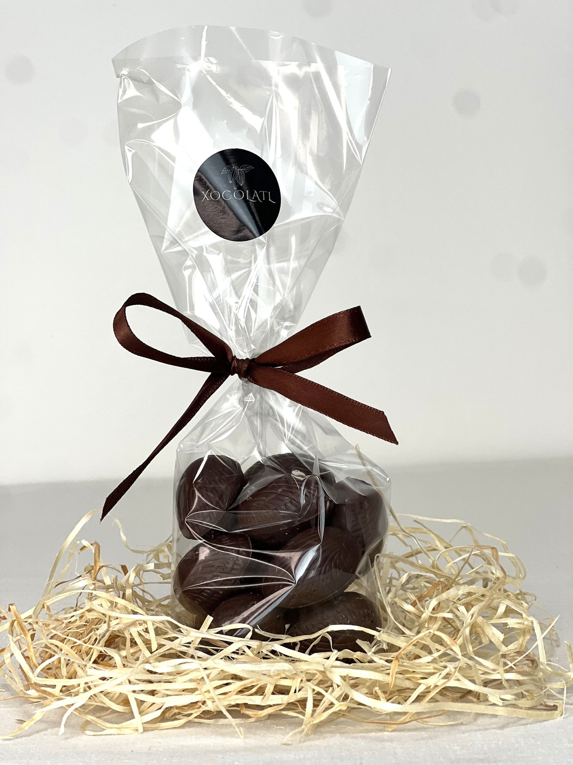 Découvrez notre délicieux sachet de 15 petits œufs au chocolat, une véritable gourmandise qui ravira les amateurs de douceurs sucrées. À l'intérieur du sachet vous trouverez des œufs au chocolat noir avec un cœur savoureux au caramel crémeux et des œufs au chocolat au lait avec un cœur praliné.